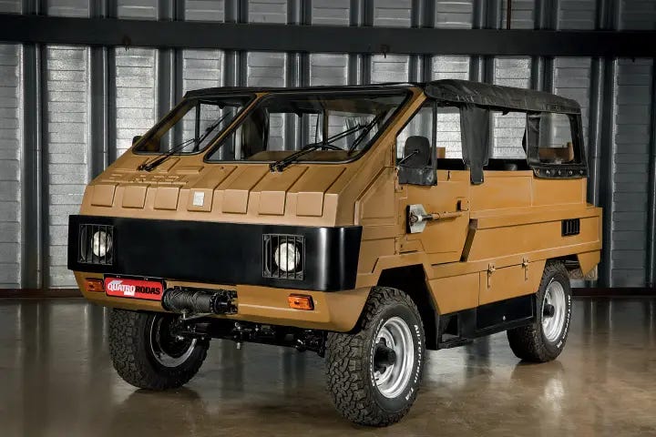 Este veículo robusto na imagem é um Gurgel X15. Ele é exótico, encara qualquer terreno e tem uma engenharia brasileira admirável. Um colecionador pode avaliar um exemplar desses em mais de R$ 100 mil, mas a verdade é que 99% das pessoas na rua ainda prefeririam um Jeep Compass.