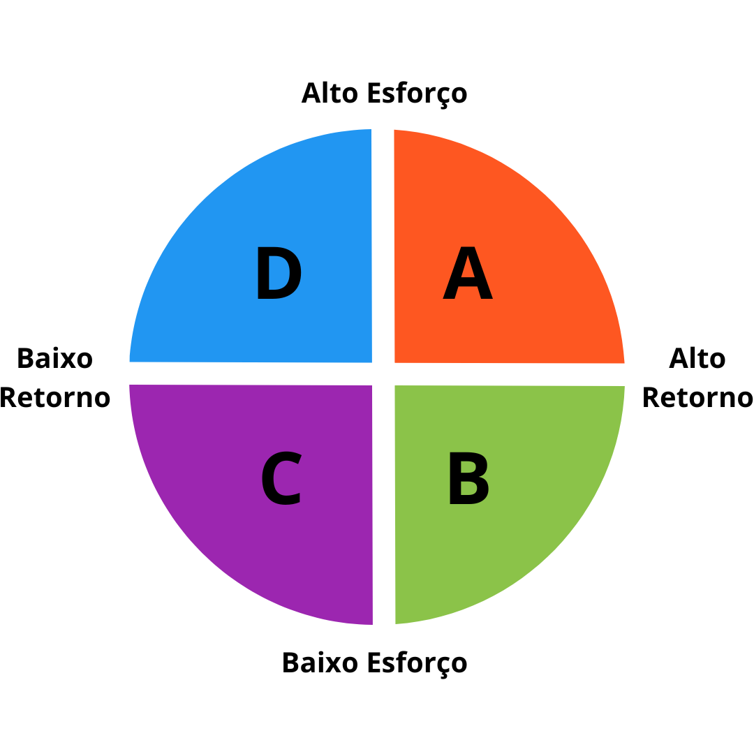 A composição do seu portfólio deve ser amparada em uma matriz de Esforço/Retorno, como esta: